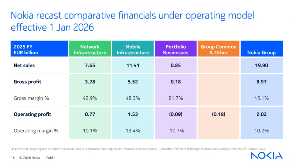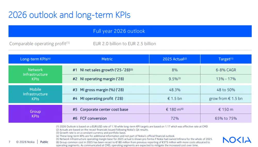 在财务方面——诺基亚设定了2026年实现20亿至25亿欧元的可比营业利润目标。