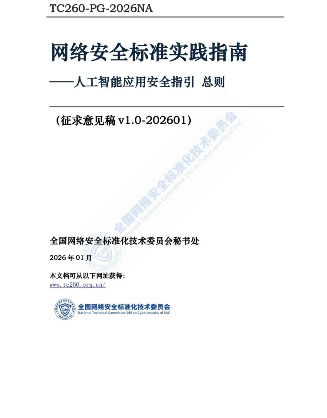 《网络安全标准实践指南 —— 人工智能应用安全指引 总则(征求意见稿 v1.0-202601)》由全国网络安全标准化技术委员会秘书处于 2026 年 1 月发布,是人工智能应用安全系列实践指南的统领性文件,起草单位涵盖多部委信息中心、科研机构、金融机构及科技企业。文件依托网络安全相关法律法规制定,立足人工智能产业发展安全需求,确立六大安全基本原则,划分 AI 应用全生命周期七大治理阶段,设立安全分级与能力成熟度匹配两大约束机制,明确人类最终控制权等核心治理底线。本文件适用于各行业开展 AI 应用安全风险防范与管理,也为监管部门、第三方测试评估机构提供专业参考,搭建起 AI 应用全生命周期的安全治理框架,为规范人工智能产业安全发展提供基础性指引。