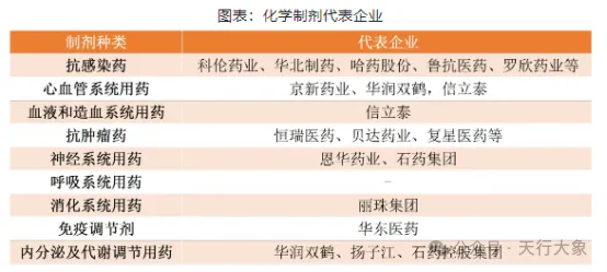 (5)制剂 化学制剂行业主要是指从事直接用于人体疾病防治、医学诊断的化学药品制剂的制造产业。按照制剂类型划分,化学制药可细分为抗感染用药、神经系统用药、抗肿瘤药、心血管系统用药、血液和造血系统用药、呼吸系统用药、消化系统用药、免疫调节剂、内分泌及代谢调节用药等多个品类。