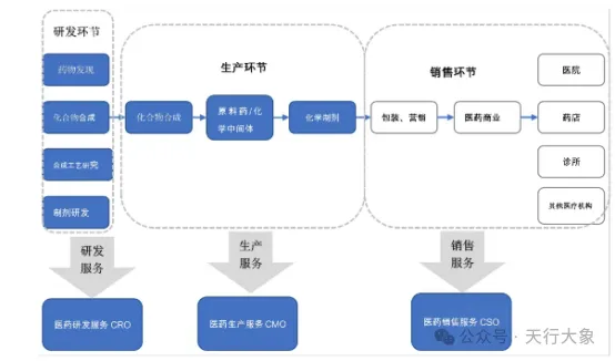 (1)CRO:医药合同研发企业,核心为创新药企提供药物发现、临床研究、临床试验等新药研发相关合同研究服务。