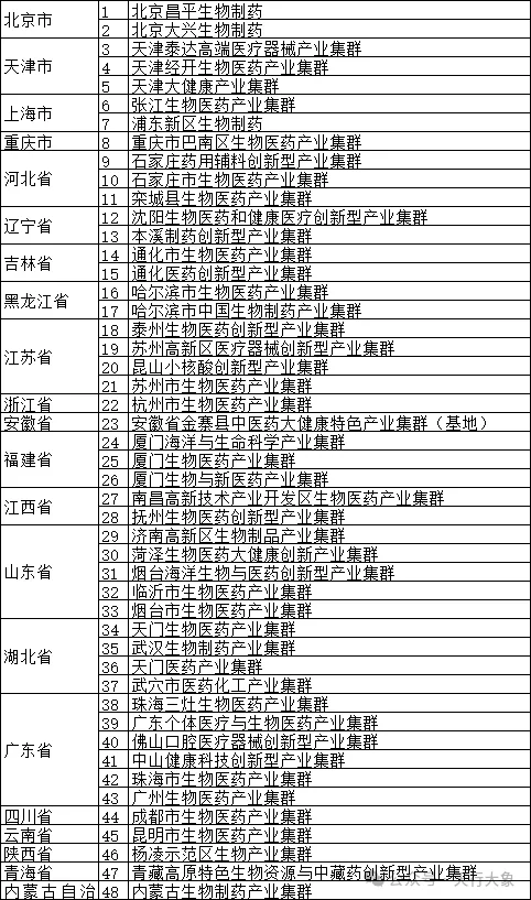 全国共计48个生物医药产业集群。