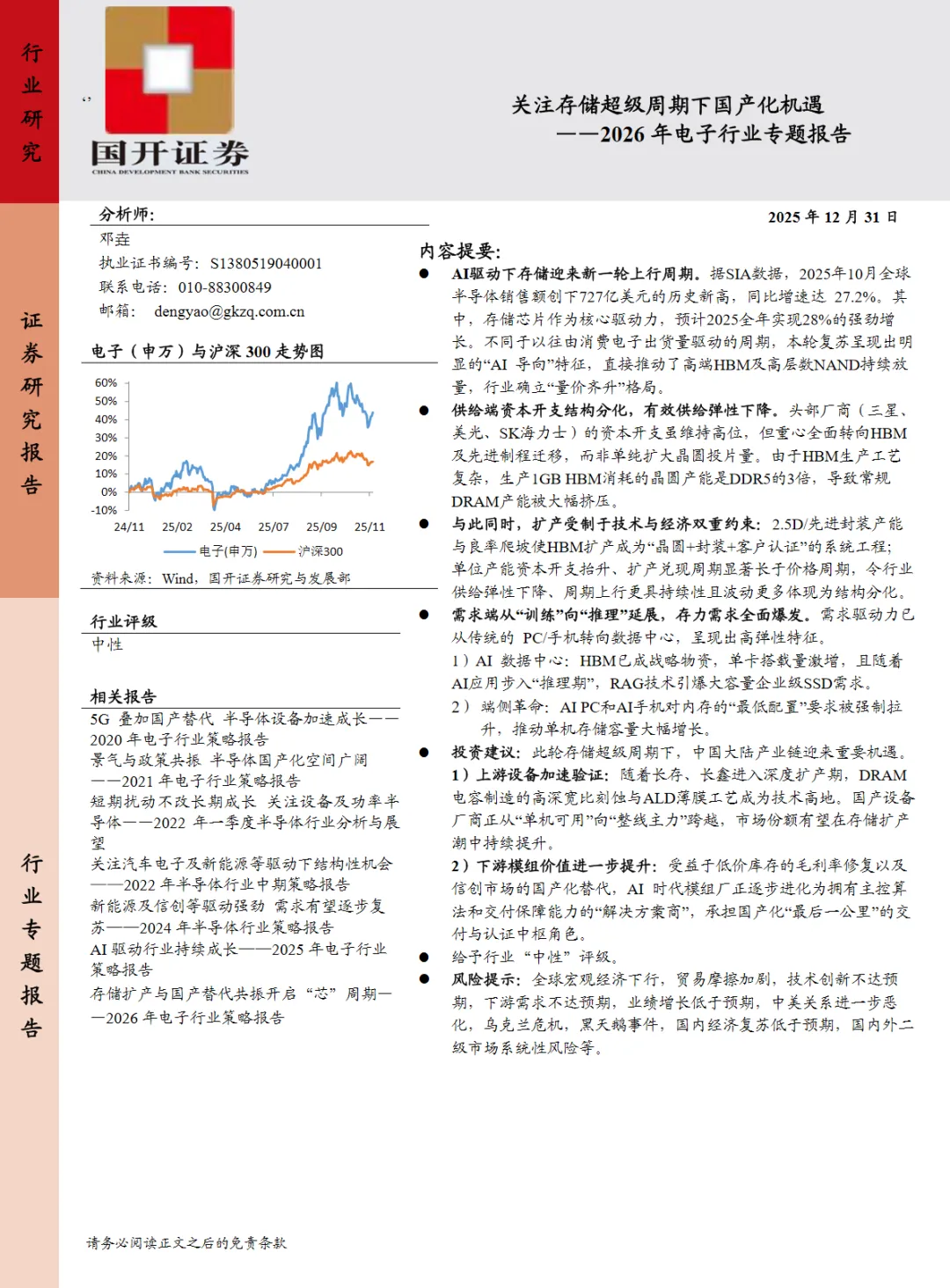 行业研究报告-《2026年电子行业专题报告关注存储超级周期下国产化机遇》