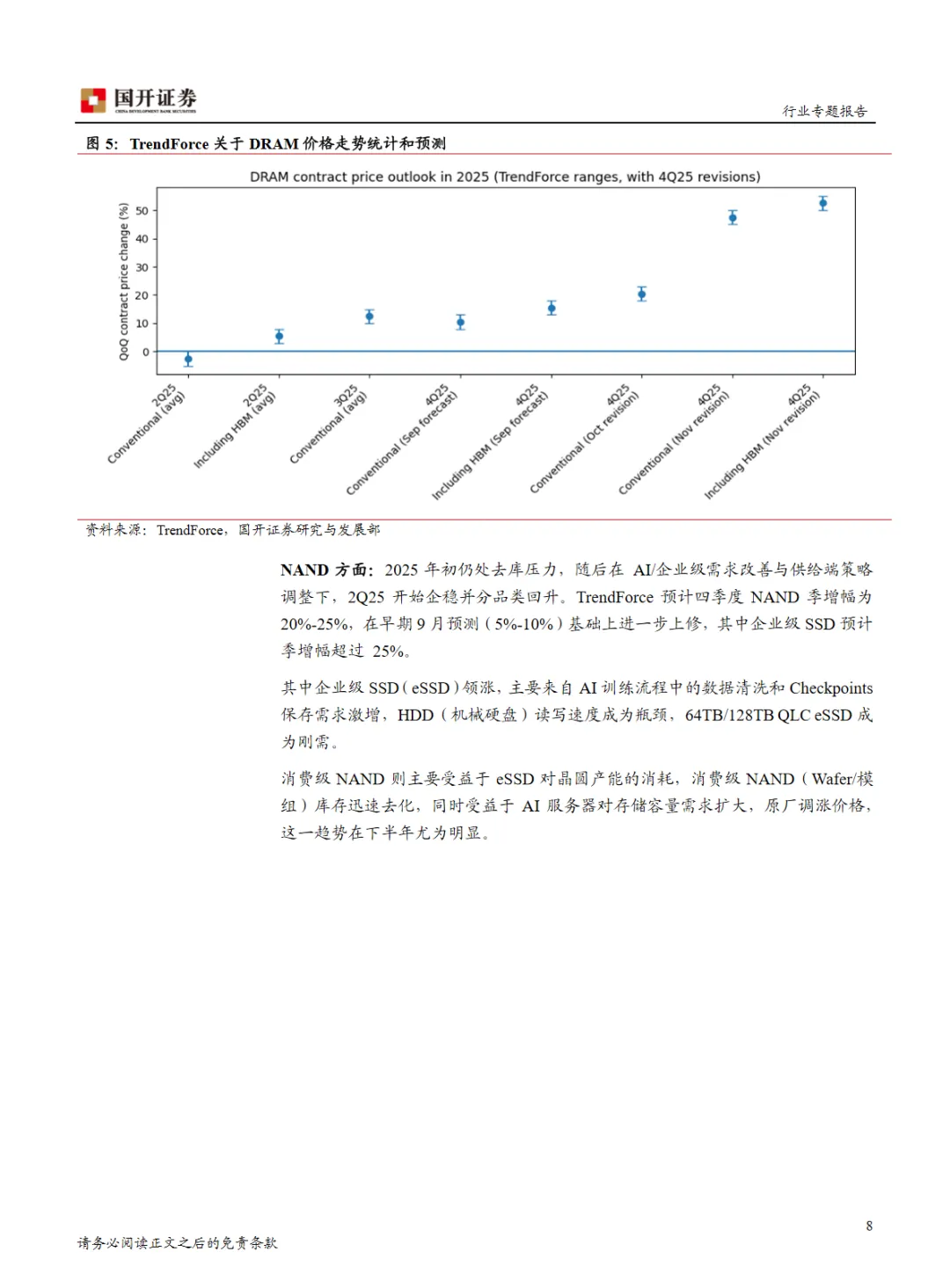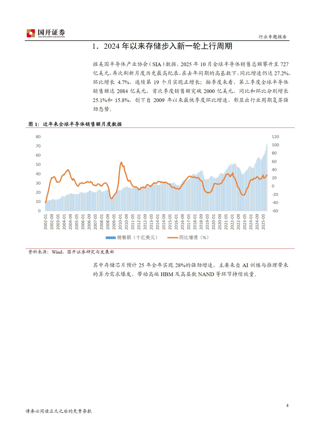本篇行业报告可以通过扫下方知识星球下载。39元就可以下载星球所有报告。免费提供报告查找服务。在2026年电子行业专题报告中,我们关注到存储行业在AI技术的推动下迎来了新一轮的增长周期。2025年10月,全球半导体销售额达到了创纪录的727亿美元,同比增长27.2%,其中存储芯片作为增长的核心动力,预计全年实现28%的强劲增长。这一轮增长与以往由消费电子驱动的周期不同,呈现出明显的“AI导向”特征,推动了高端HBM及高层数NAND的需求增长,确立了“量价齐升”的行业格局。在供给端,资本开支的结构分化导致了有效供给弹性的下降。头部厂商如三星、美光、SK海力士的资本开支虽然维持高位,但重心转向了HBM及先进制程迁移,而非单纯的晶圆投片量扩大。HBM生产工艺的复杂性导致了常规DRAM产能被挤压,进一步影响了供给。需求端的变化也值得关注,需求驱动力从传统的PC和手机转向了数据中心,呈现出高弹性特征。AI数据中心的快速发展使得HBM成为战略物资,单卡搭载量激增。随着AI应用步入“推理期”,企业级SSD的需求也随之增长。对于中国大陆产业链而言,这一轮存储超级周期带来了重要的机遇。上游设备厂商正在从“单机可用”向“整线主力”跨越,市场份额有望在存储扩产潮中持续提升。下游模组厂则受益于低价库存的毛利率修复以及信创市场的国产化替代,逐步进化为拥有主控算法和交付保障能力的“解决方案商”。综合来看,存储行业的这一轮增长周期与AI技术的发展紧密相关,供给端的资本开支结构变化和需求端的数据中心需求增长共同推动了行业的快速发展。中国大陆产业链在这一过程中扮演着越来越重要的角色,特别是在设备制造和模组解决方案领域。免责声明:以上分享报告为公开合法渠道获得,内容大部分来源于网络,版权归原作者所有,如有侵权,请及时与我们联系,我们将第一时间保障您的权益。推荐内容仅供参考学习,不构成投资建议。