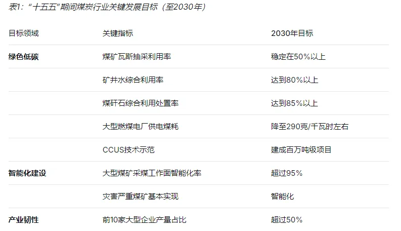 以“十五五”规划为纲领,行业目标清晰:通过智能化与绿色开采、煤电清洁高效利用、现代煤化工高端化、CCUS规模化以及“煤炭+新能源”融合发展,力争在保障国家能源安全“压舱石”作用的同时,实现碳排放强度显著下降。关键量化目标包括:到2030年,煤矿瓦斯抽采利用率稳定在50%以上,矿井水综合利用率达80%,煤矸石综合处置率达85%,并建成百万吨级CCUS示范项目。