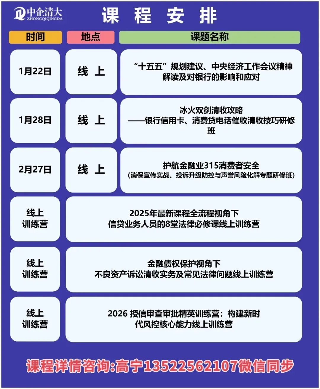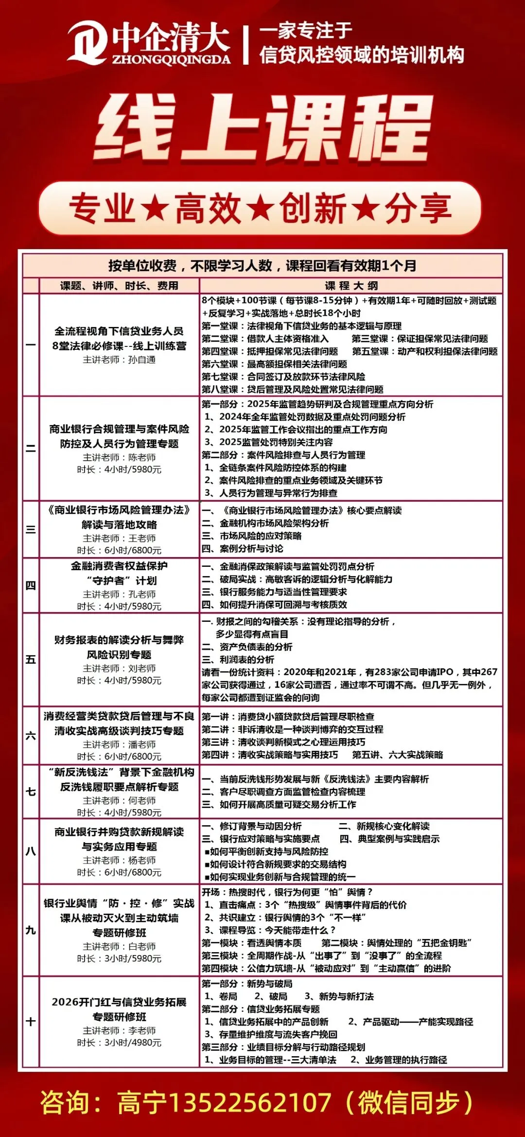 银行必修线上课:2026授信审查审批精英训专题:构建新时代风控核心能力线上训练营