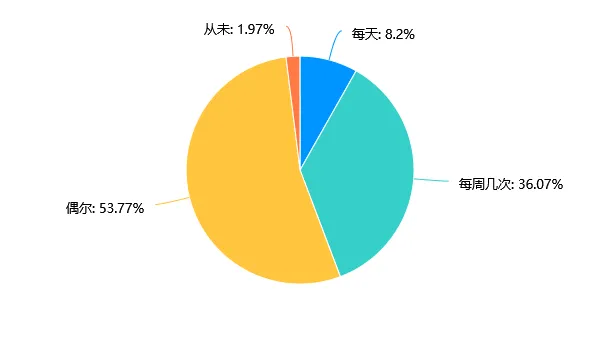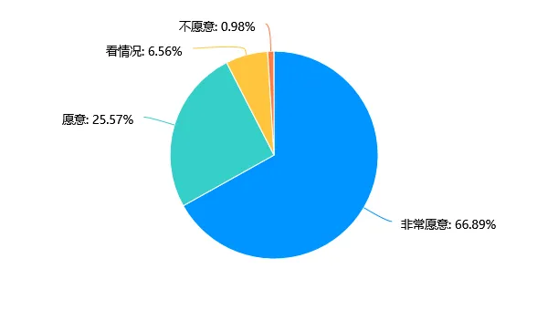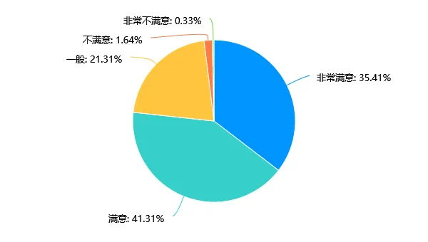 选择“非常满意”和“满意”的比例分别为35.41%和41.31%,两者合计占比76.72%,超过四分之三;选择“一般”的占21.31%;“不满意”和“非常不满意”的比例极低,仅为1.64%和0.33%,整体呈现高满意度态势。