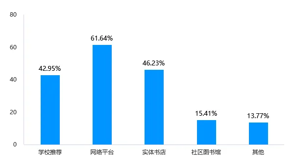 在所有获取途径中,选择网络平台的比例最高,达到61.64%,显著高于其他选项,表明其在科普读物获取方面占据主导地位。