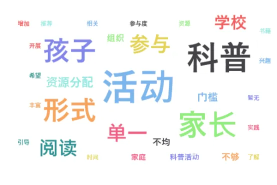 (1)家长参与度不足:因工作忙碌、时间有限(尤其多孩家庭),难以陪伴孩子进行科普阅读,对科普活动了解甚少。