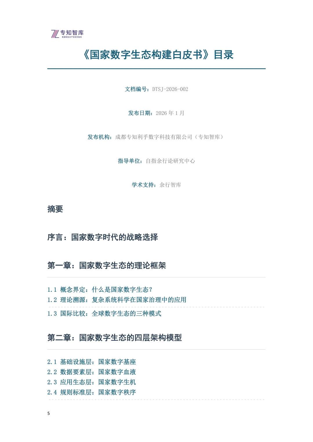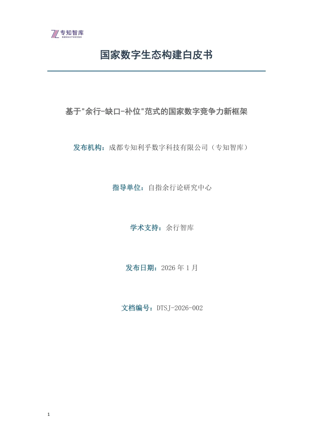 本白皮书《基于"余行-缺口-补位"范式的国家数字竞争力新框架》(文档编号:DTSJ-2026-002)由成都专知利乎数字科技有限公司(专知智库)联合自指余行论研究中心、余行智库共同研究编制,于2026年1月正式发布。