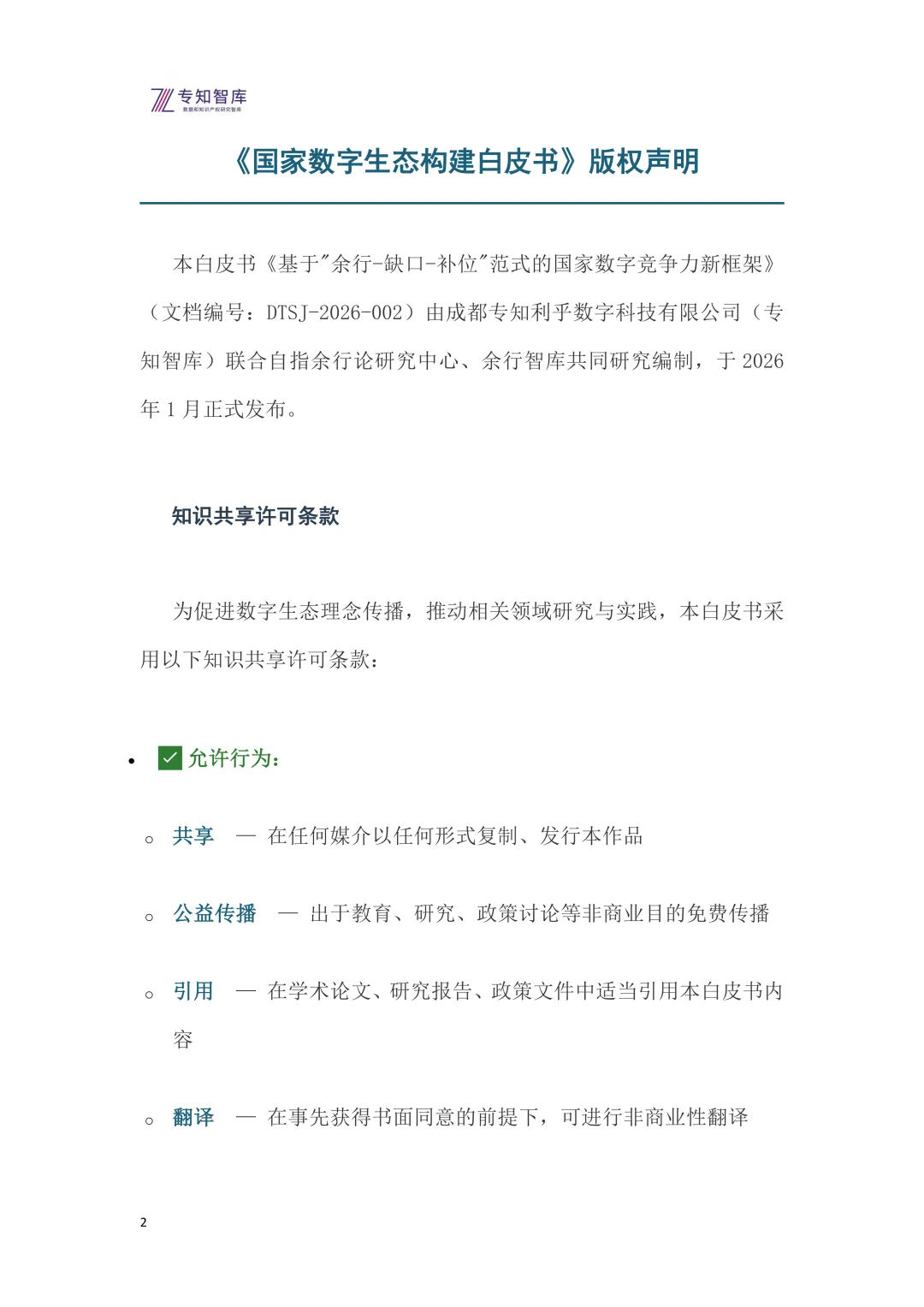 为促进数字生态理念传播,推动相关领域研究与实践,本白皮书采用以下知识共享许可条款: