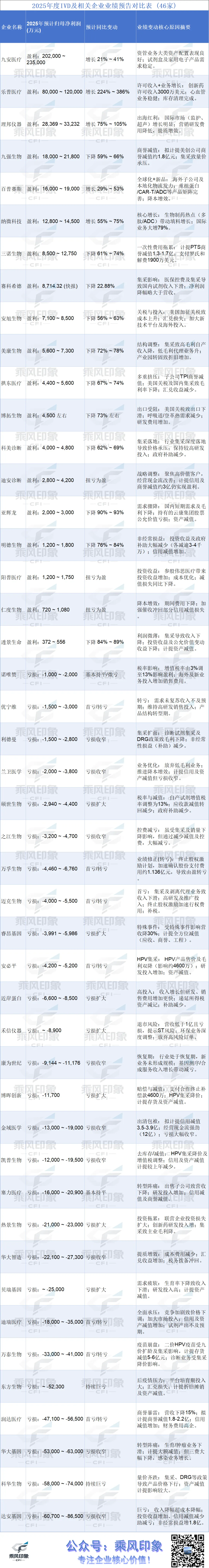 截至1月30日晚,共有46家国产IVD(及相关)上市企业率先披露了2025年业绩预告。