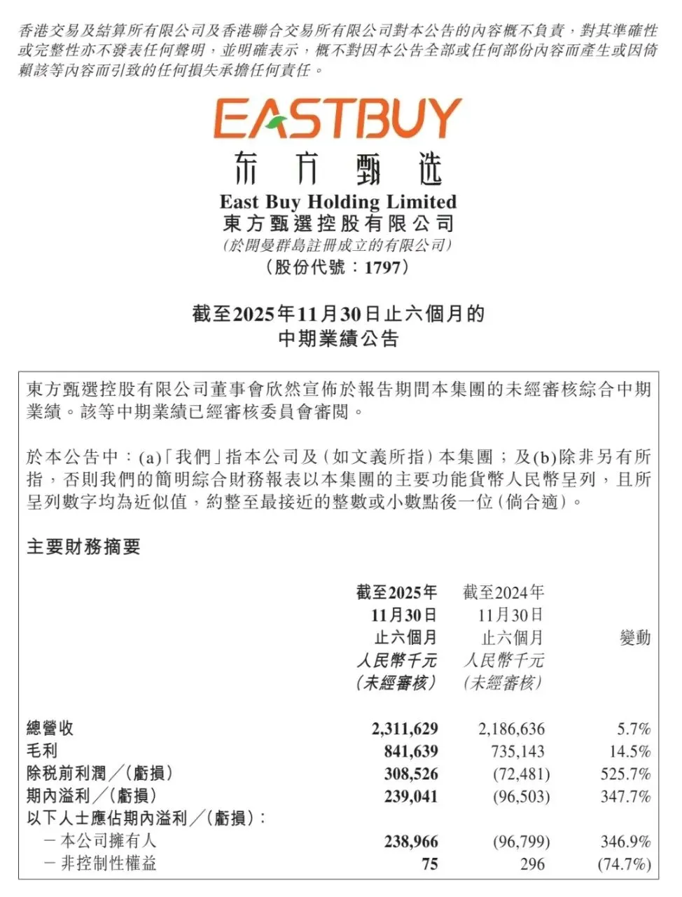 1月28日,东方甄选发布了2026财年上半年中期业绩公告,用实打实的数据,回应了所有外界的质疑。公告显示,2026财年上半年营收23.12亿元,上年同期21.87亿元,同比增长5.7%。