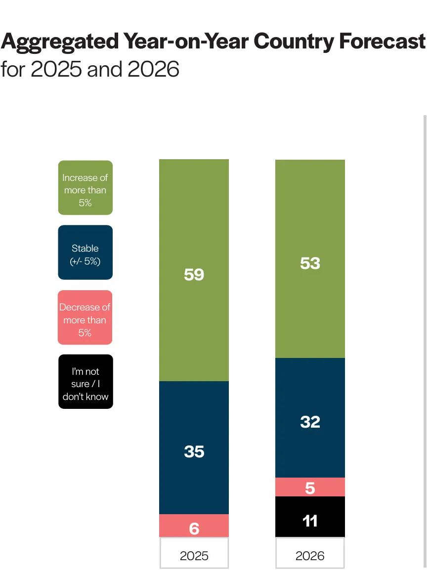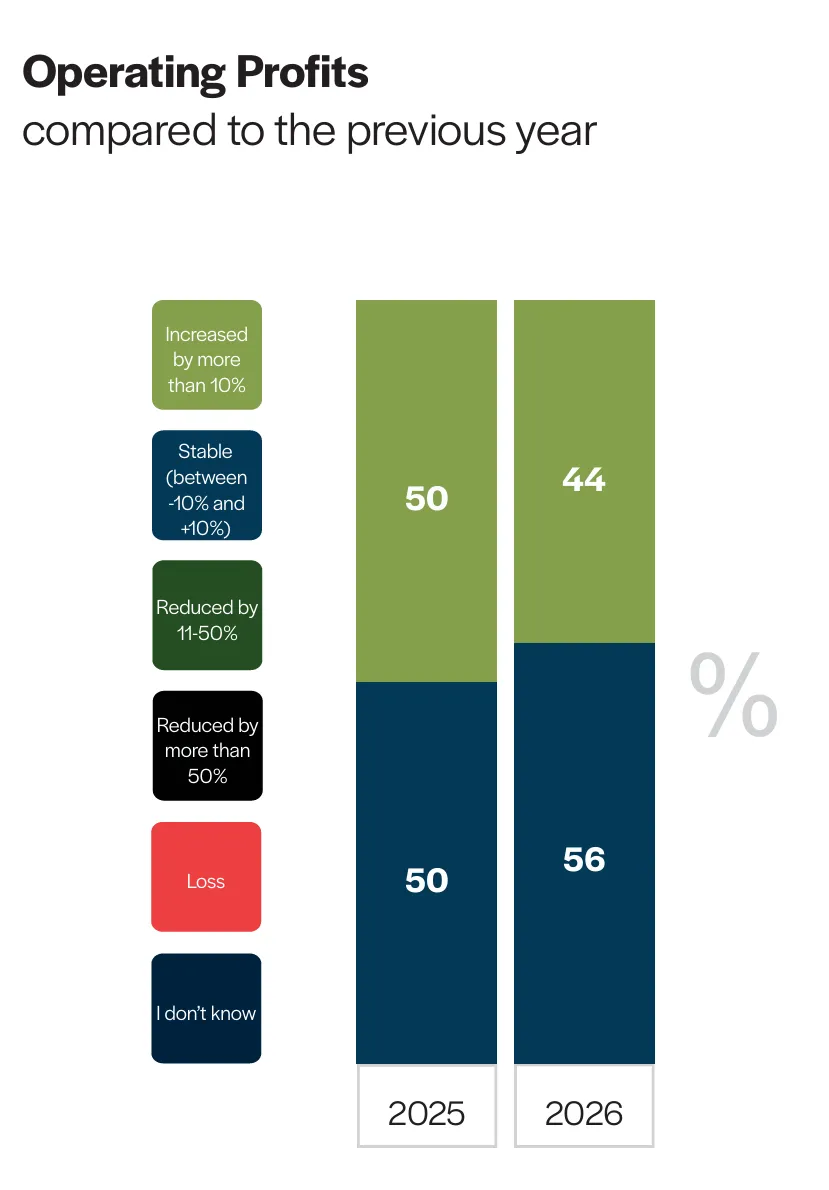 2026 年预期:44%预期利润增长超过10%,56%预期稳定,。