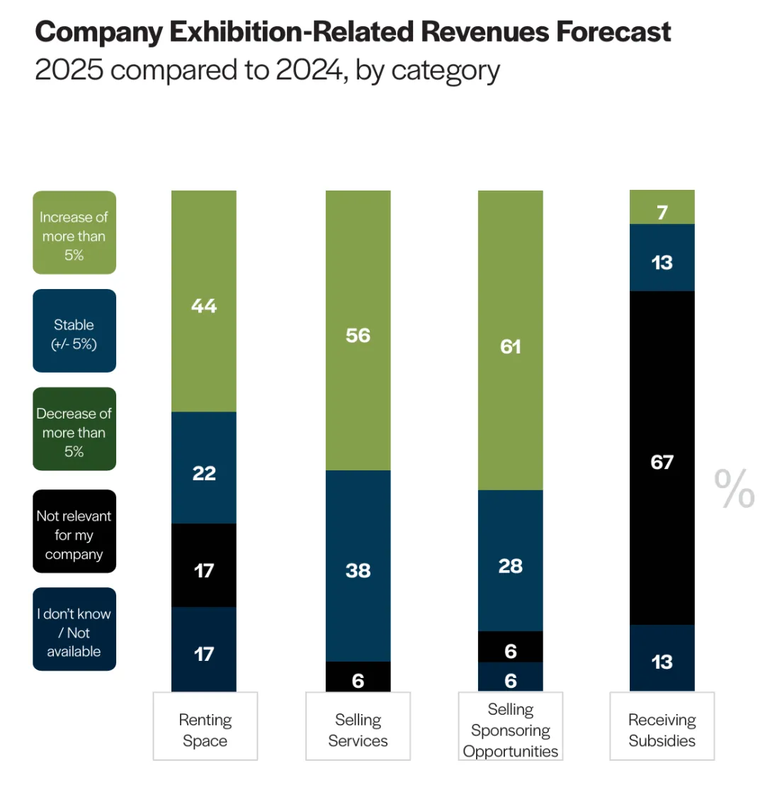 租赁空间收入:2025年,44%的企业增长超过5%,22%稳定,17%不清楚。