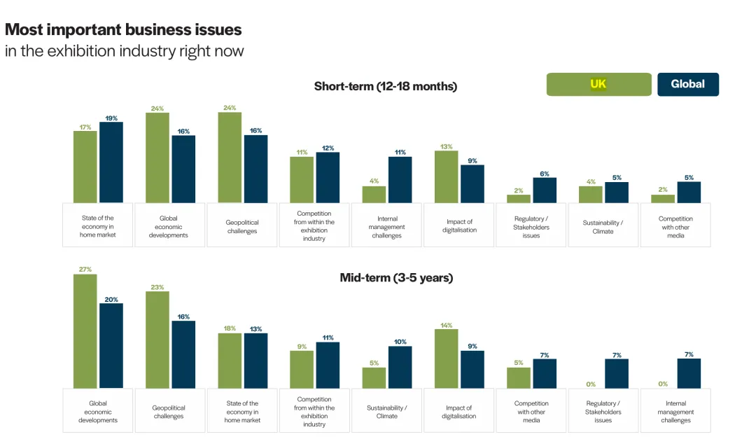短期(12-18个月):最关注"全球经济发展"和“地缘政治挑战”(均为24%,较明显高于全球16%),其次是"本国经济挑战"(17%)。