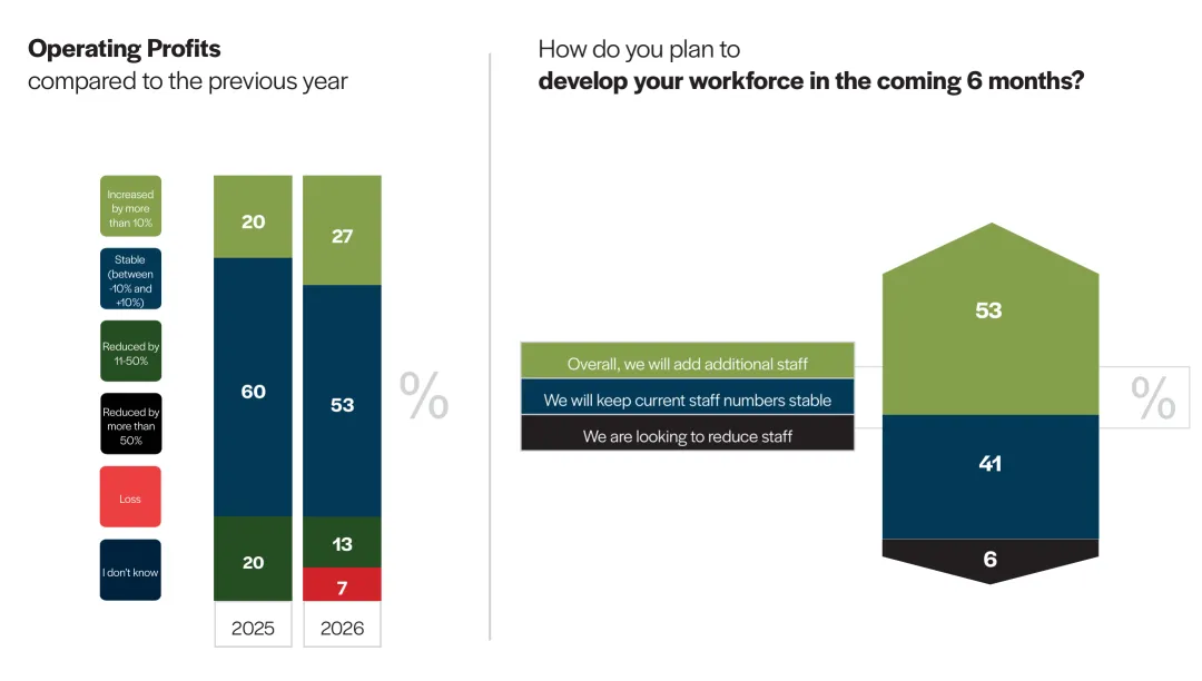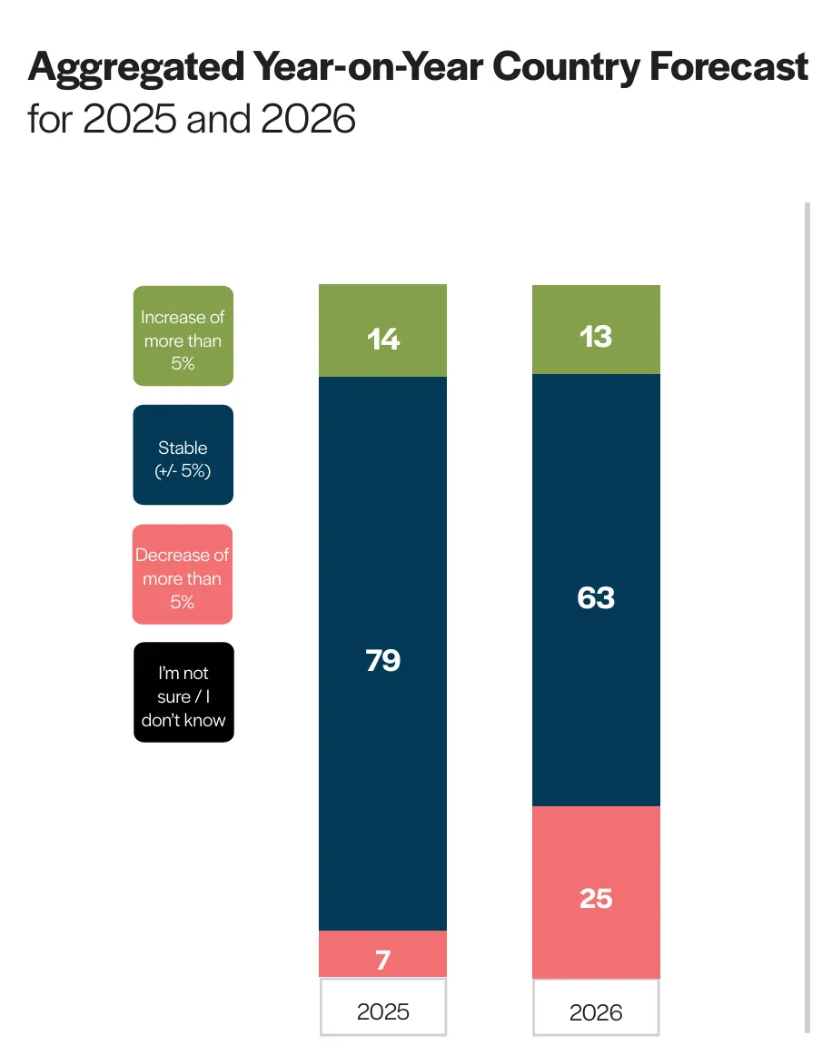 2026 年预期:27%预期利润增长超过10%,53%预期稳定,13%预期下降11-50%,7%不确定。