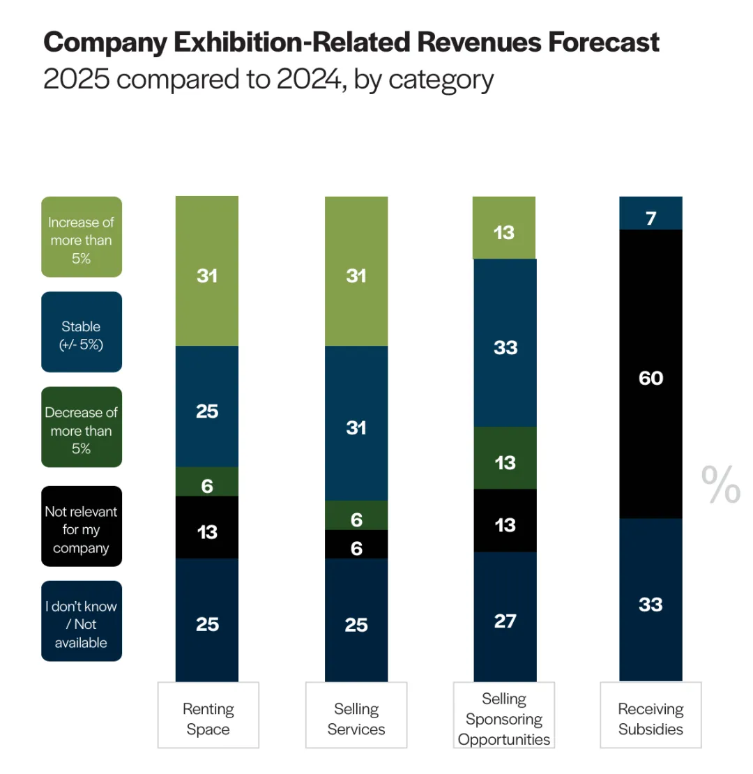 租赁空间收入:31%的企业2025年增长超过5%,25%稳定,6%下降超过5%,13%表示不清楚。