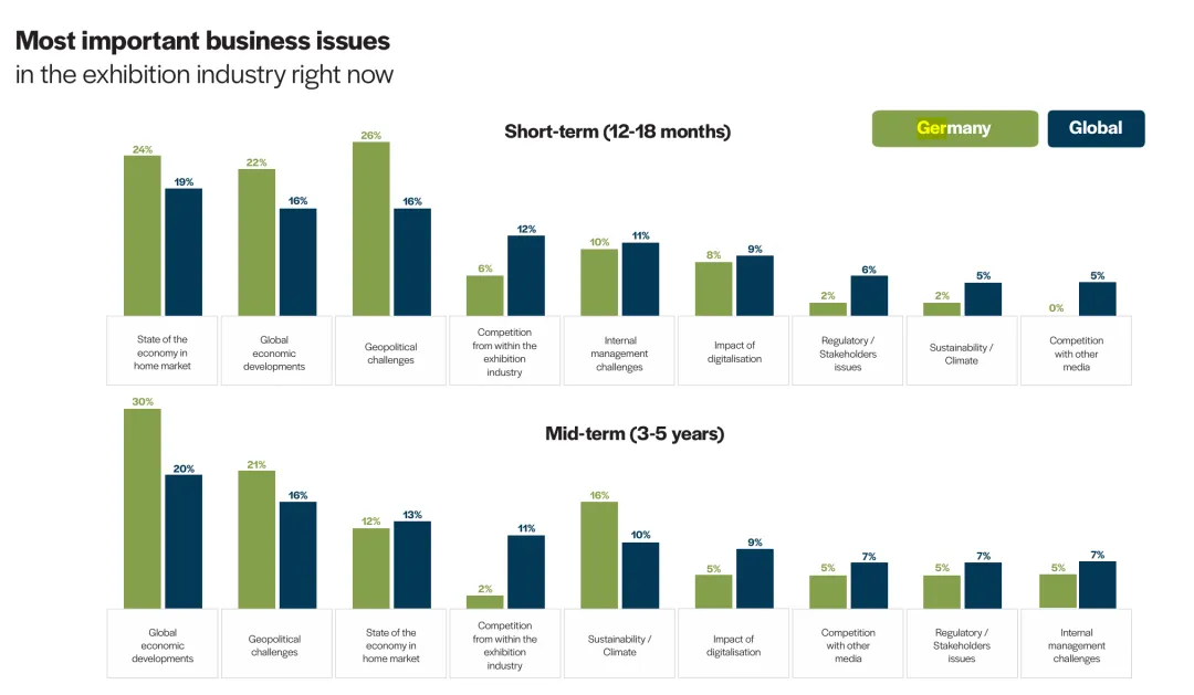 改进方向:最重视"让观众参与互动"(25%,略高于全球22%),其次是"提供更具互动性的学习形式"(19%)、"组织社交活动"(17%)和"更新展会外观和感觉"(14%)。