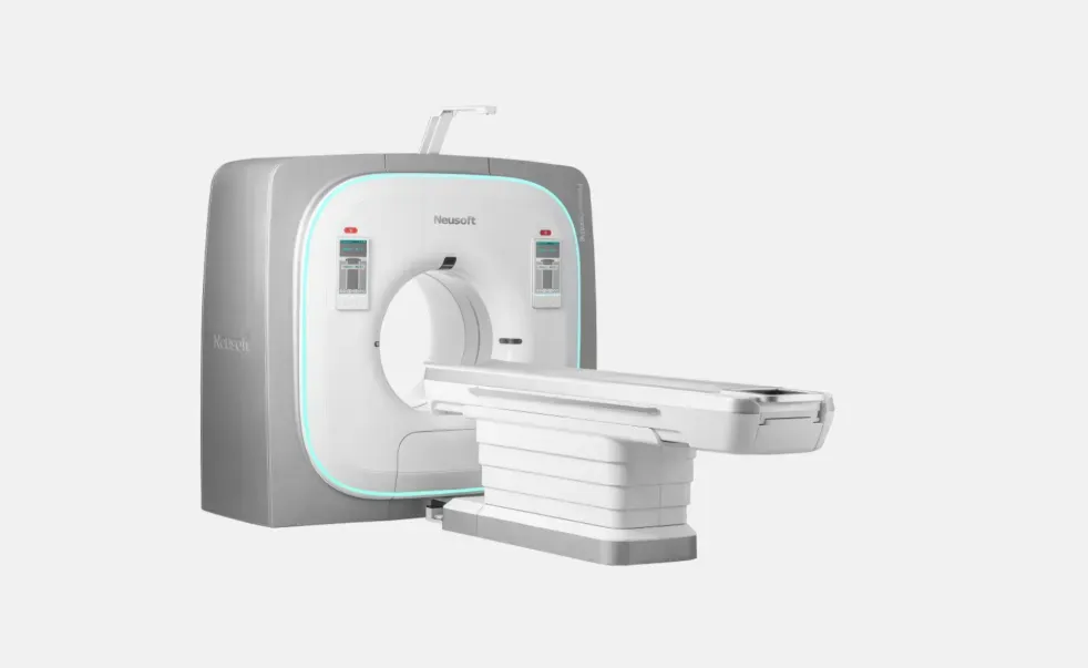 作为全球PCCT的鼻祖,西门子医疗不仅最早实现了商业化,更敏锐地察觉到了中国市场的政策风向,打出了一套“进口+国产双源+国产单源”的组合拳。这是全球首款获批的PCCT,定义了行业的“金标准”。它凭借碲化镉(CdTe)探测器技术,率先解决了电子噪声和能量混叠问题。它的存在,主要用于树立顶级科研标杆,锁定国家级科研项目。NAEOTOM Alpha Pro(国产创新双源光子):这是西门子最狠的一步棋。通过将Alpha技术引入中国工厂,并获得“国产创新医疗器械”认证(即绿通身份),Alpha Pro不仅保留了双源CT(DualSource)极致的时间分辨率(心脏成像的王者),更规避了“进口设备采购限制”的壁垒。它直接瞄准了中国顶级三甲医院的临床主力机型位置,既有双源的快,又有光子的清。NAEOTOM Alpha Prime(国产单源光子):如果说Pro是秀肌肉,Prime就是走量。作为国产单源光子CT,它通过降低硬件成本(单球管/单探测器系统),大幅降低了PCCT的装机门槛。这款产品意在“降维打击”传统的超高端256排/320排EIDCT市场,让地市级三甲医院也能通过单源架构迈入“光子时代”。2.东软医疗:老牌劲旅的“极速”突围