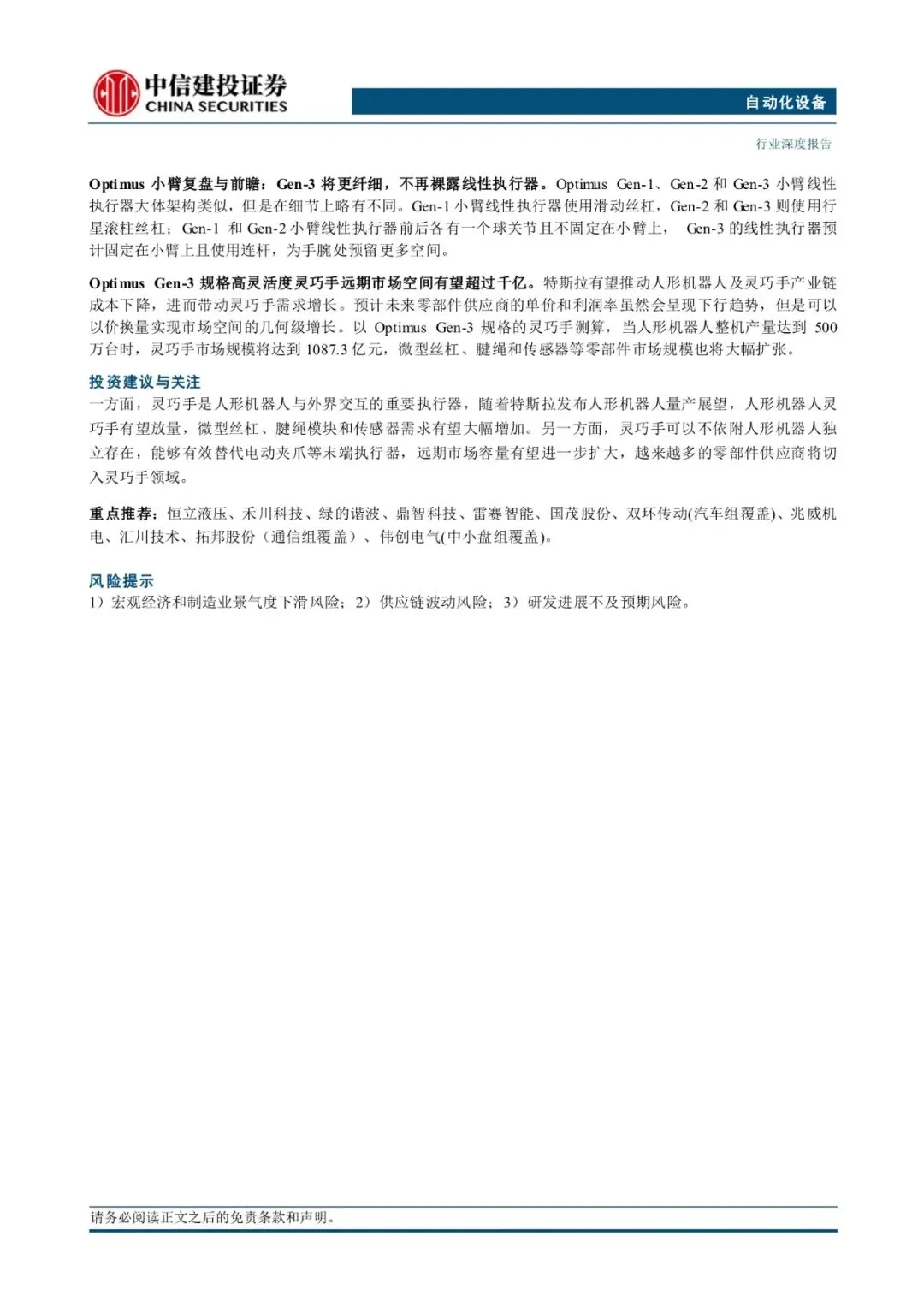 人形机器人系列专题之灵巧手:仿生设计大势所趋,OptimusGen3带动电机、腱绳、微型丝杠需求扩张|附33页PDF文件下载