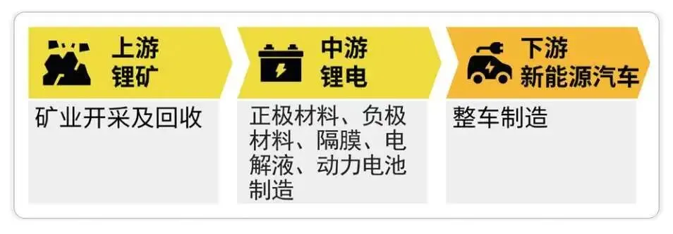 如新能源汽车产业链,整个链条包括最上游的锂矿、中游的锂电和下游的新能源汽车。锂电又可以细分出来正极材料、负极材料、隔膜、电解液、动力电池制造等。在这个产业链中,新能源汽车这个环节起到了引领行业的作用,它是否景气,决定了中上游的需求情况。