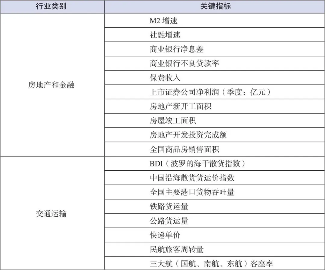 换句话说,我们要寻找的指标有两类——前瞻性指标和高频同步指标。前者能让我们感知可能的发展趋势,后者能让我们及时跟踪和验证。