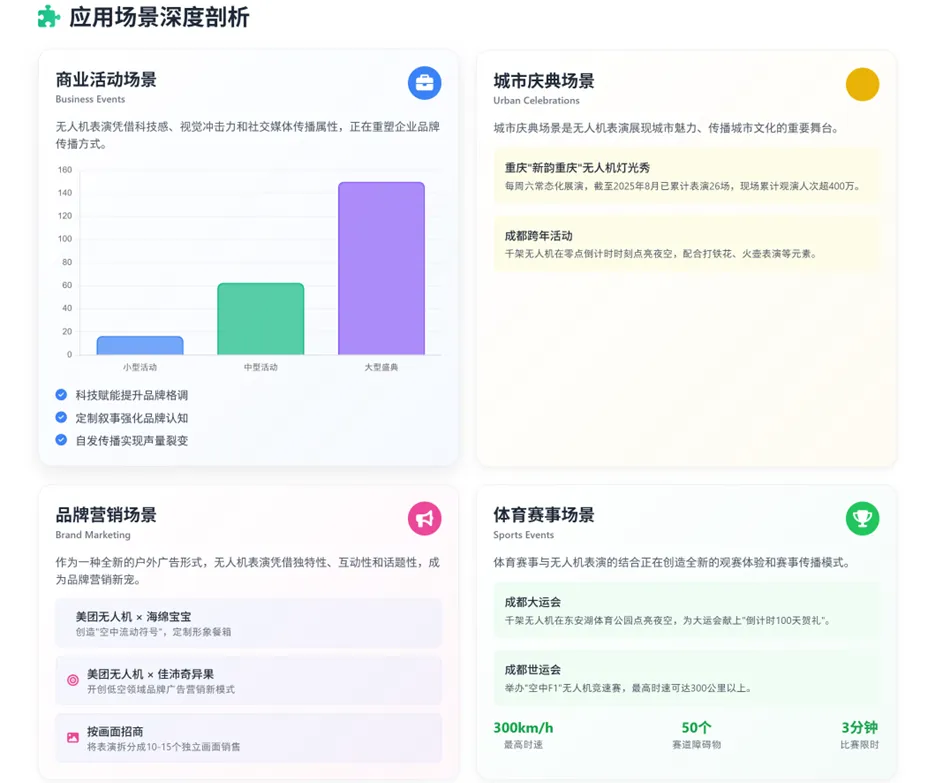 下沉至三四线城市:随着技术成熟和成本下降,无人机表演向三四线城市和县域市场拓展。