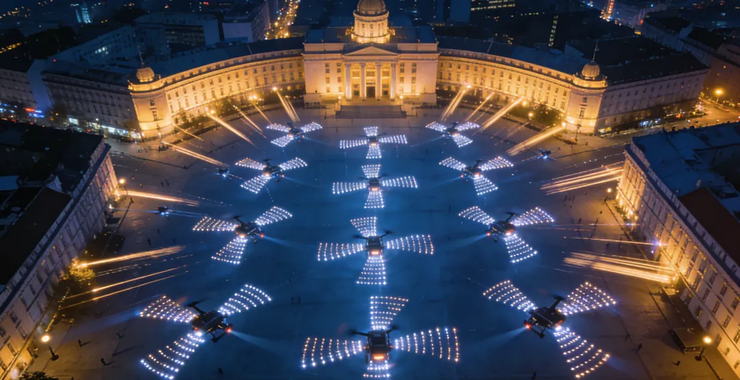 "无人机+机器人"的天地一体协同表演模式代表了未来科技表演的发展方向,正在从概念走向现实,创造出前所未有的视觉震撼和技术突破,成为高端商业活动、大型庆典的新宠。