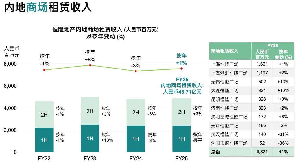 零售是我们的核心,占内地业务的 83%,因为写字楼只占 17%。上半年与 2024 年持平,但下半年同比增长 3%,全年整体增长 1%。