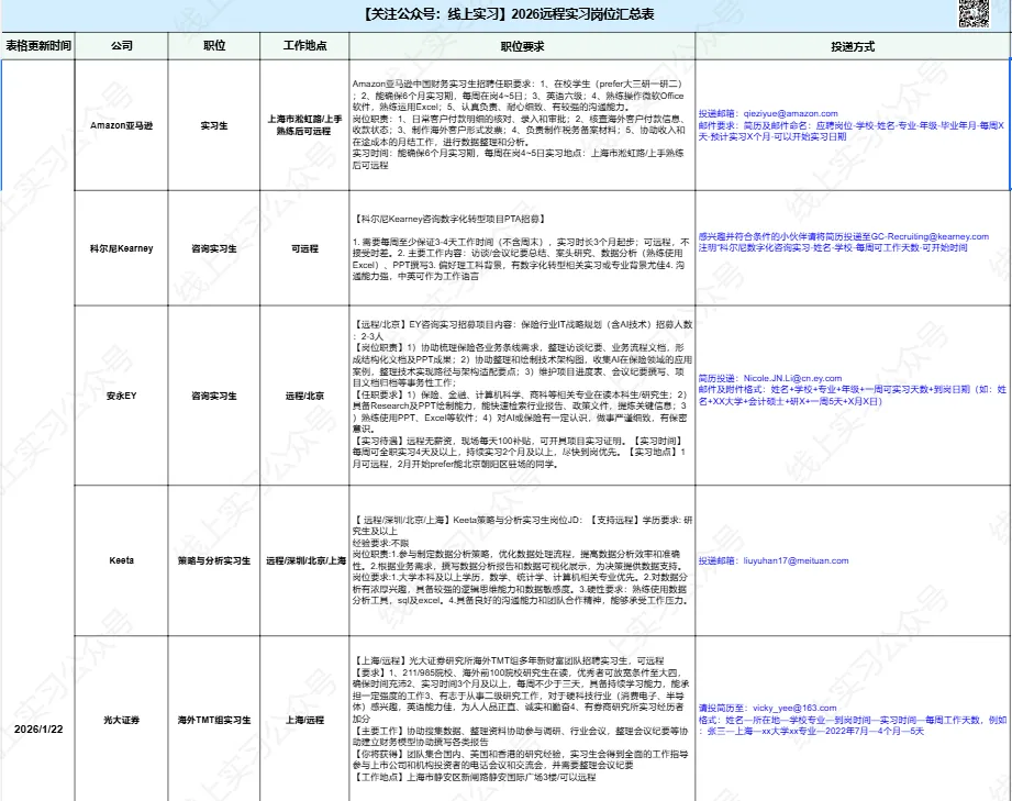 2026年远程实习汇总表~