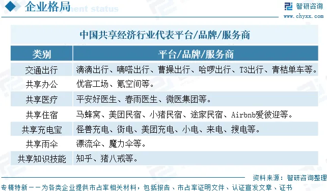 共享经济行业企业格局和重点企业分析