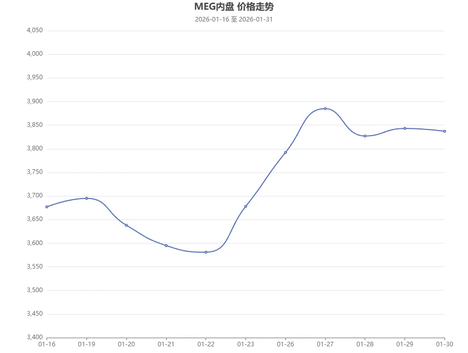 MEG 本周张家港乙二醇市场出现连续上涨后高位整理走势,从上周五开始,市场走出低估值快速修复行情,连续三个交易日上涨,然而过快的涨升难以得到基本面的有效支撑,之后市场陷入回撤整理阶段,在此阶段,市场价格运行于3800-3850区间,多空因素交织,交易缩量为主。