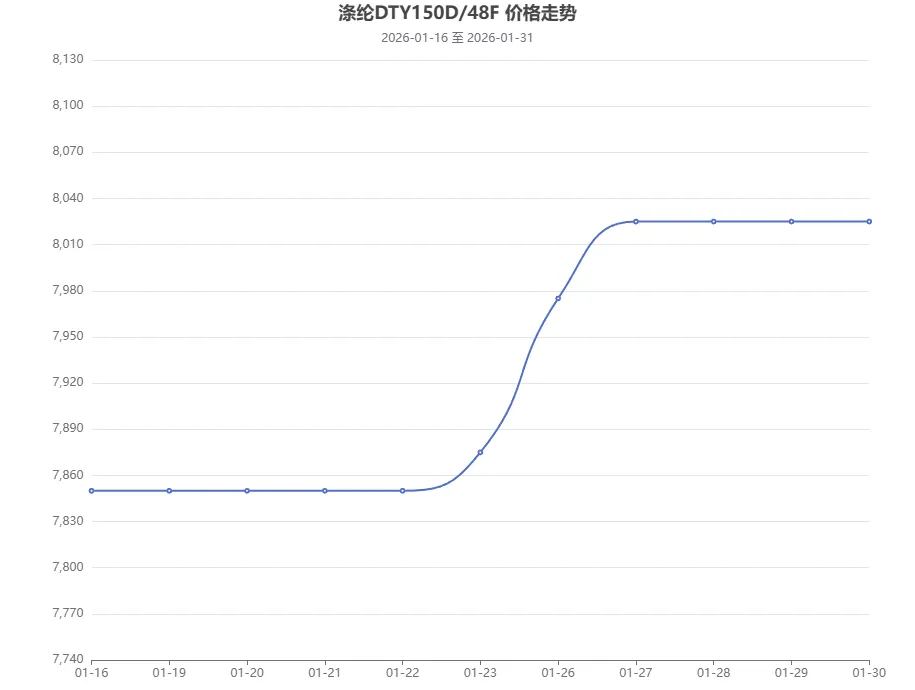 锦纶长丝市场呈现稳中小幅上探的运行态势,整体行情表现坚挺,市场低价货源明显减少。主因纯苯价格延续涨势,元旦以来期价累计涨幅显著,1 月下旬更是持续上行,成本端的强劲支撑进一步夯实锦纶产业链价格底部。供应端来看,随着农历春节临近,行业进入节前停工放假阶段,锦纶纺丝厂停车检修装置数量增多,行业开工率有所下滑,场内货源供应逐步收缩,供应端的减量为市场行情提供了一定支撑。需求端则受节前淡季影响表现平淡,下游织造企业开工率处于低位,临近年末,现货市场交易氛围持续降温,整体交投基本停滞,市场过节气氛浓厚,业者操作意愿低迷,多选择降负停工、观望市场,暂不进行主动报价与成交,静待节后宏观政策、原料价格及终端需求的进一步消息指引。
