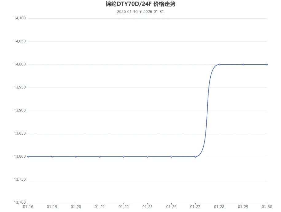 锦纶长丝 锦纶长丝市场呈现稳中小幅上探的运行态势,整体行情表现坚挺,市场低价货源明显减少。主因纯苯价格延续涨势,元旦以来期价累计涨幅显著,1 月下旬更是持续上行,成本端的强劲支撑进一步夯实锦纶产业链价格底部。供应端来看,随着农历春节临近,行业进入节前停工放假阶段,锦纶纺丝厂停车检修装置数量增多,行业开工率有所下滑,场内货源供应逐步收缩,供应端的减量为市场行情提供了一定支撑。需求端则受节前淡季影响表现平淡,下游织造企业开工率处于低位,临近年末,现货市场交易氛围持续降温,整体交投基本停滞,市场过节气氛浓厚,业者操作意愿低迷,多选择降负停工、观望市场,暂不进行主动报价与成交,静待节后宏观政策、原料价格及终端需求的进一步消息指引。