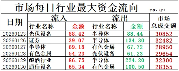资金净流出前列:有色金属、小金属、互联网服务等净流出排名靠前,其中有色金属净流出100.50亿元。