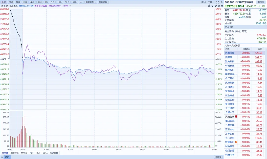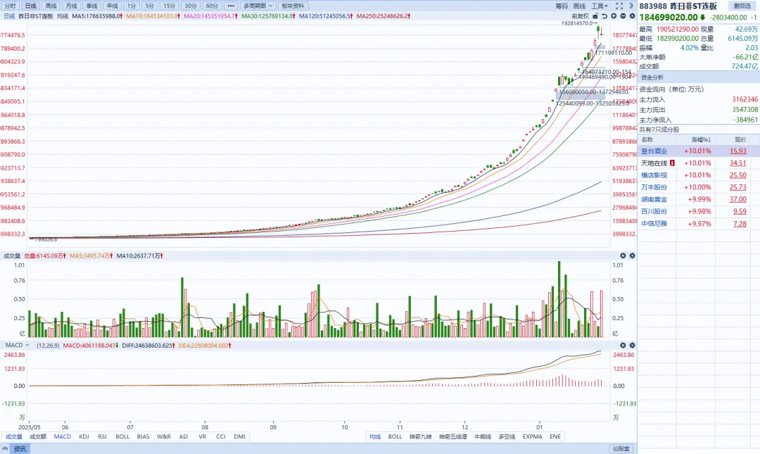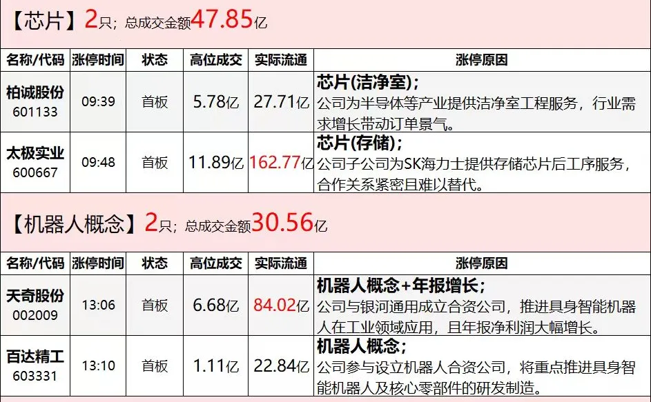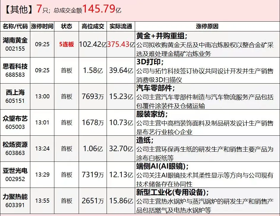 连板生态:今日全市场共48股涨停,连板股总数7只,21股封板未遂,封板率为69%(不含ST股、退市股)。焦点股方面,AI应用概念股天地在线10天6板,并购重组的湖南黄金5连板,化工股百川股份3连板,机器人概念股天奇股份5天3板。