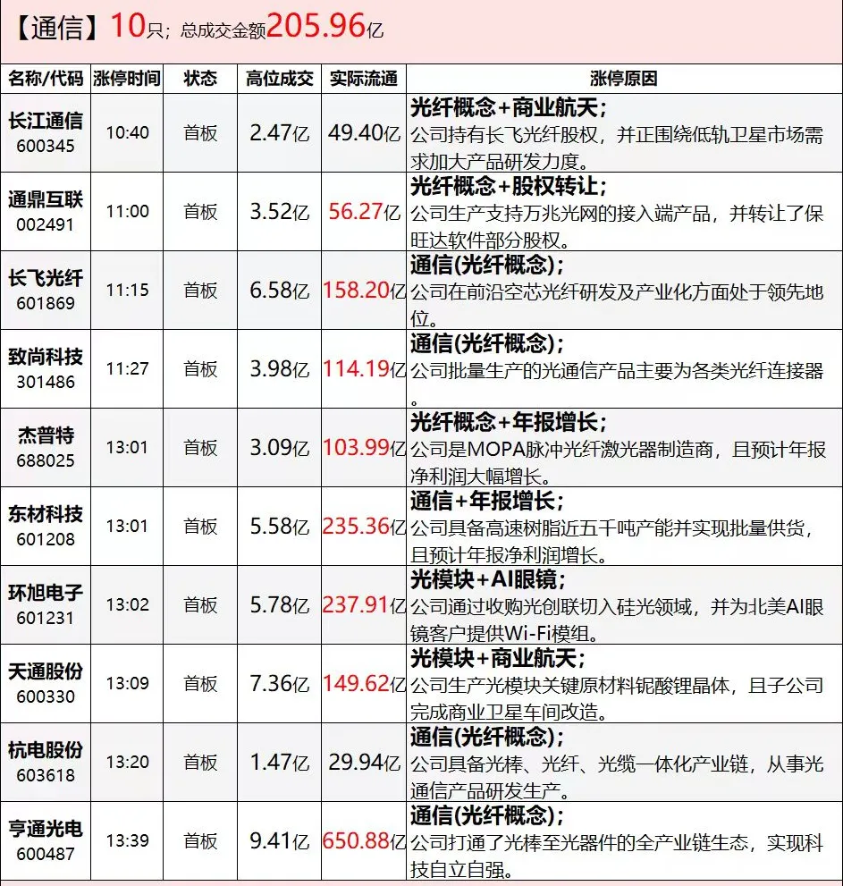 算力硬件:板块全线爆发,天孚通信涨超10%、长飞光纤涨停,均创历史新高。
