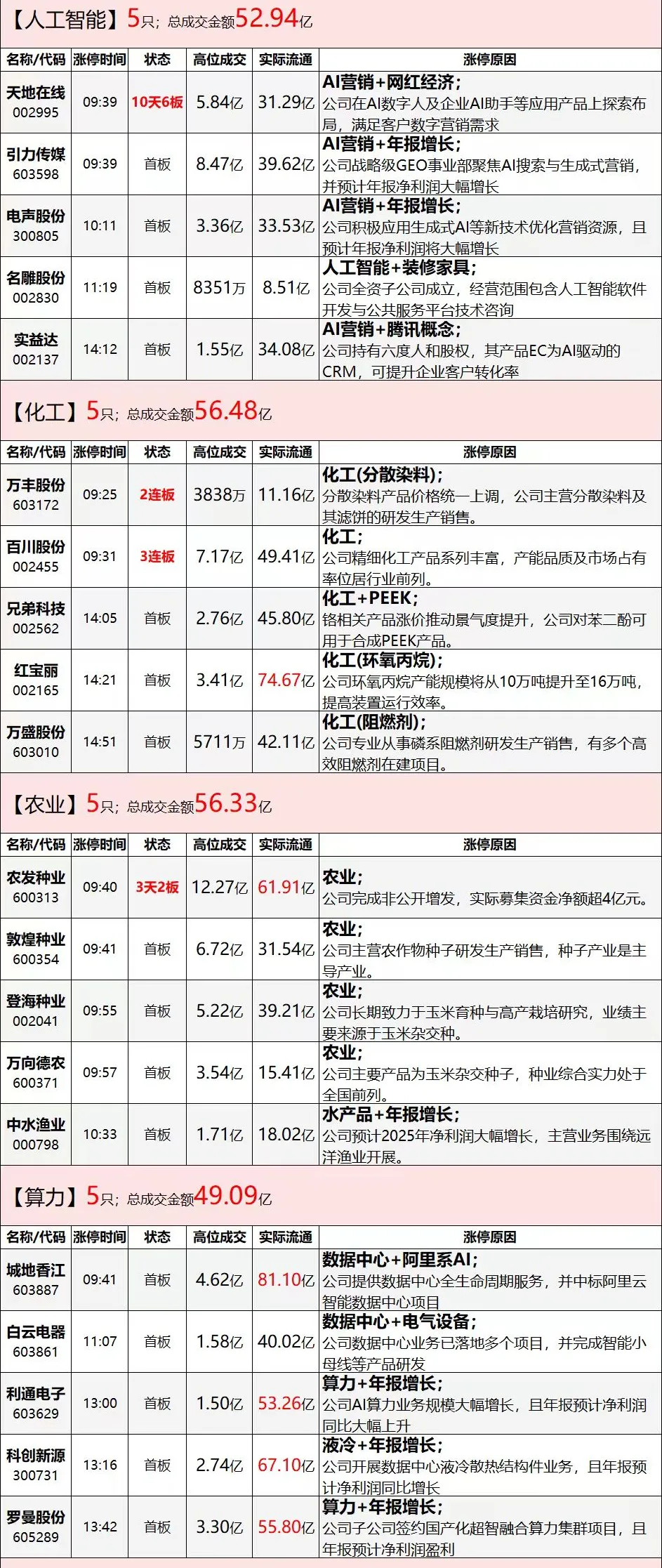 AI应用:电声股份20%涨停,引力传媒涨停,受AI商业化落地预期催化。