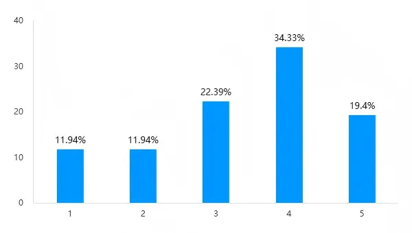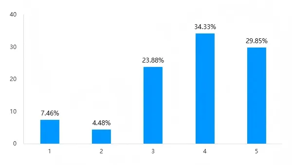 在功能价值方面,53.73%的游客认可AI工具实用价值,但仍有提升空间。在操作体验上,64.18%的游客给出4分及5分,充分说明目前AI工具界面设计友好,学习成本低。