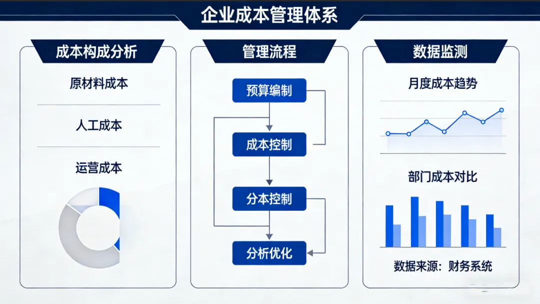 采购、项目成本管理是企业内部矛盾最集中的领域,推进风险较高,财务可先通过 “阐述利害、模拟方案” 等方式获得管理层支持,再逐步落地;若企业不具备专业管理条件,也可采用非财务手段(如调整关键岗位人员、供应链合作优化等)过渡,但这些并非专业的成本管理方法。