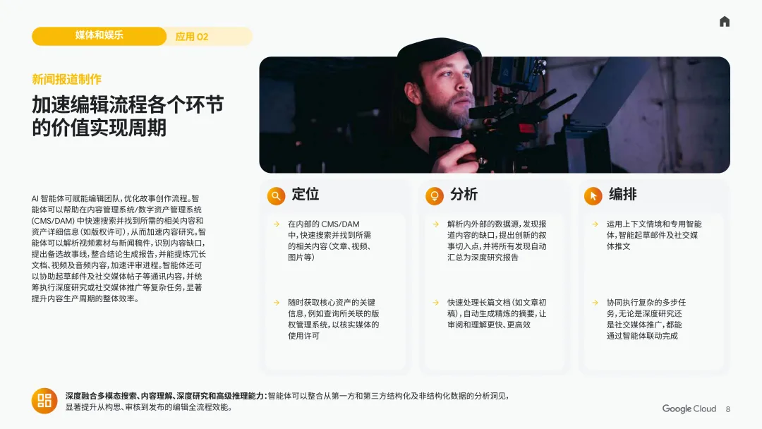 导读:AI 技术已全面融入主流场景,智能体作为核心载体推动多领域变革。全球生成式 AI 使用率达 48%,新兴市场与亚太地区 adoption 率领先,公众对 AI 的积极态度持续升温,57% 的人对其潜力感到兴奋。行业层面,媒体和娱乐业受智能体驱动迎来颠覆性变化。智能体通过 “发现、理解、行动” 模式,打通碎片化数据与系统,在脚本分析、新闻报道制作等环节优化流程、提升效率。全球范围内,AI 应用覆盖工作协作、医疗健康、科学研究等多元场景,72% 的人期待其推动科学进步,71% 认可其在医疗领域的积极作用。企业端,Google Cloud 等平台通过开放协议与定制化方案,支持多智能体协同与规模化部署。公众信任政府与企业协同监管 AI,61% 的人相信政府能保障技术良性发展。AI 正从技术创新走向深度应用,在激活行业潜力、提升社会效率的同时,构建起更智能的协作生态。