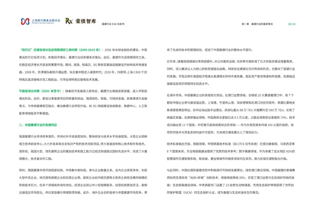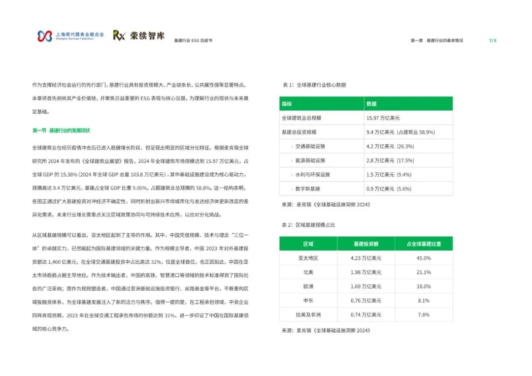 白皮书先梳理全球及中国基建行业发展现状与价值链特征,明确规划设计、施工建设、运营维护等各阶段的ESG核心关注点;再深入剖析全过程碳排放管理、环境扰动防控、劳工保障与社区共建等关键议题,给出针对性应对方向。
