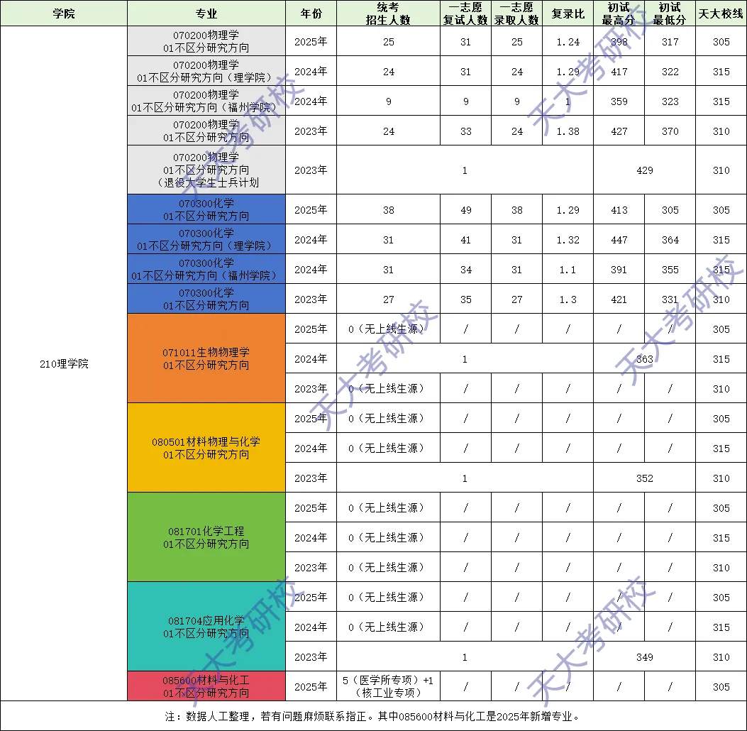 注:070200物理学、070300化学、071011生物物理学专业请参考理学分数线。