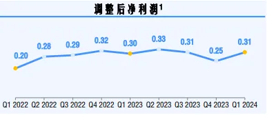 单票利润方面(如下图所示),中通单票净利润从2023年四季度的0.25元,上升至2024年一季度的0.31元,环比增速可观。如此表现,放在同期竞争对手们单票价格普遍下降的大环境下,更为难得。