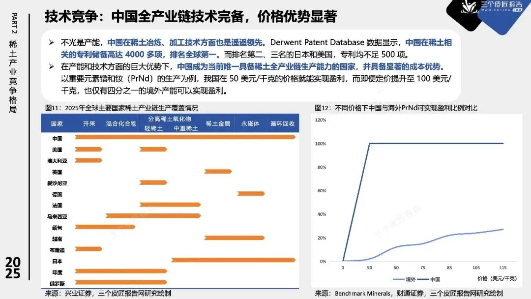 成本优势更是碾压级的。以关键元素镨钕为例,中国在50美元/千克就能盈利,而海外企业要到100美元/千克才有四分之一能存活。这种差距让竞争对手望尘莫及。