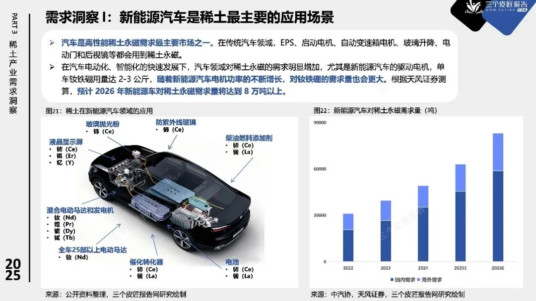 新能源汽车是绝对主力,单车钕铁硼用量达2-3公斤。预计2026年新能源车对稀土永磁需求将超8万吨,这还只是开始!