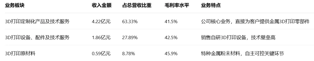 公司业务模式的一个重要特征是应用领域的持续多元化。尽管航空航天领域仍占据重要地位(2025年上半年收入占比45%),但公司已成功开拓工业领域(占比51.04%)、商业航天、3C电子、医疗齿科等多个市场。这种多元化战略降低了公司对单一行业的依赖,增强了业务抗风险能力。