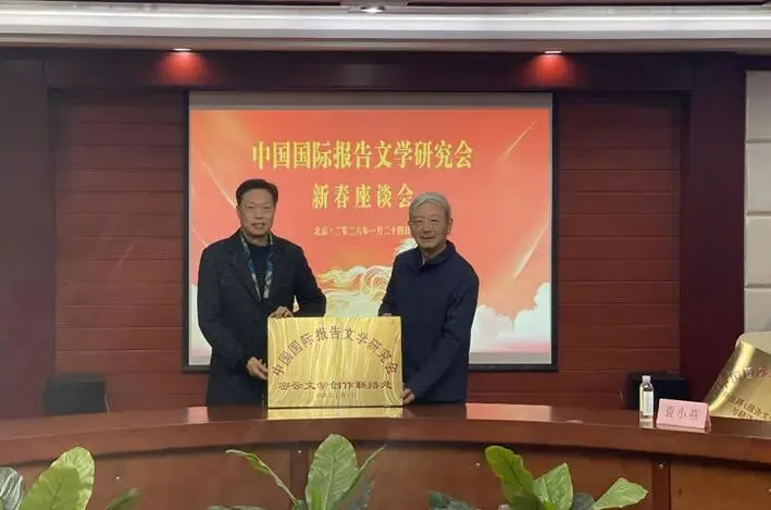 1月24日,中国国际报告文学研究会“新丝路文产融合与翻译专业委员会”及“密云文学创作联络处”揭牌仪式暨新春座谈会在京举行。中国作协社联部主任包宏烈、副主任丰玉波,中国国际报告文学研究会会长王晓滨以及各界专家学者、作家等20人与会。会议由中国国际报告文学研究会书记赵晏彪和新丝路文产融合与翻译专业委员会秘书长杨奕萍共同主持。