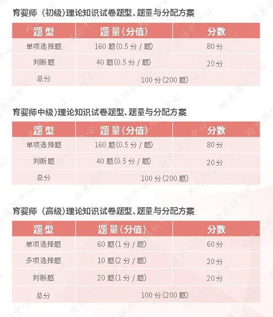 育婴员初中高级考试 考两科:育婴员基础知识+育婴员操作技能