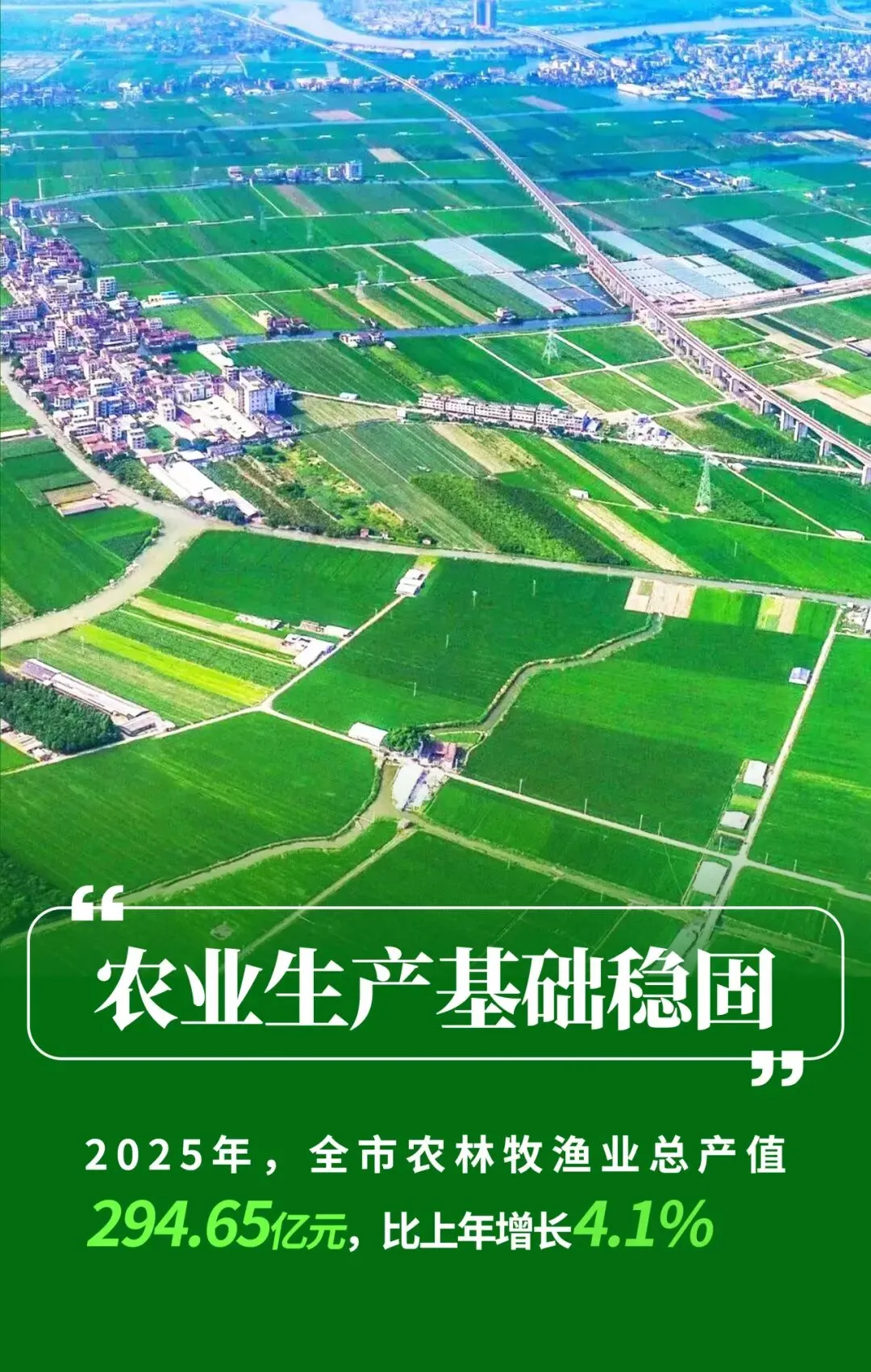 (一)农业生产基础稳固,特色品类丰产增收。2025年,全市农林牧渔业总产值294.65亿元,比上年增长4.1%。分行业看,农业产值增长6.0%,林业产值增长4.8%,牧业产值下降1.6%,渔业产值增长4.4%。一是粮食蔬菜稳定生产。粮食总产量19.52万吨,增长1.4%;蔬菜产量75.03万吨,增长5.7%。二是特色水果丰产。园林水果产量27.26万吨,增长10.5%。其中,枇杷、龙眼、荔枝、柚等本地特色品种产量分别为8.05万吨、3.14万吨、0.15万吨和11.39万吨。三是渔业生产稳健。水产品总产量116.85万吨,增长4.3%。